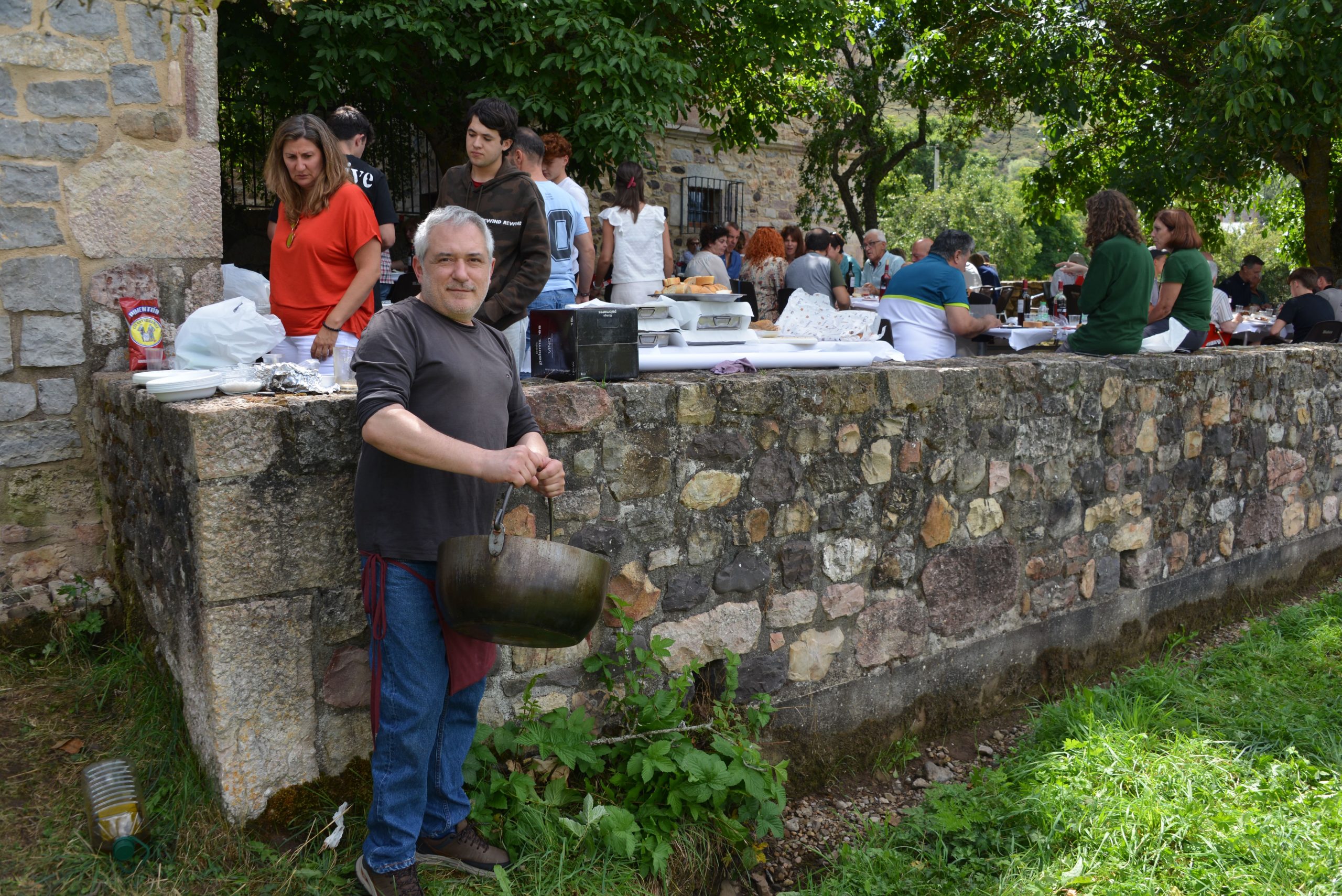 Después de los bolos en la terraza de la Cantina del Casa del Parque, los asistentes, más de setenta personas, degustaron morcilla de Quintanilla de Babia y una tradicional caldereta preparada por Enrique Rodríguez, responsable de la Cantina del Palacio de los Quiñones y del restaurante Fuentesanta de Huergas de Babia. Por supuesto, se finalizó con imprescindible tarta babiana y café de puchero.